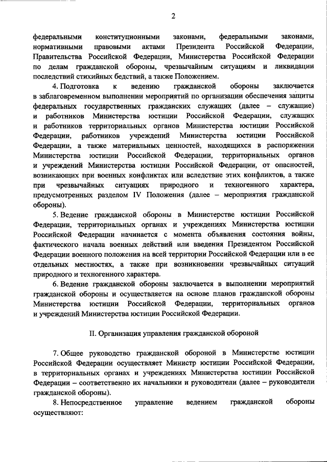 "ОБ УТВЕРЖДЕНИИ ПОЛОЖЕНИЯ ОБ ОРГАНИЗАЦИИ И ВЕДЕНИИ ГРАЖДАНСКОЙ ОБОРОНЫ В МИНИСТЕРСТВЕ ЮСТИЦИИ РОССИЙСКОЙ ФЕДЕРАЦИИ, ТЕРРИТОРИАЛЬНЫХ ОРГАНАХ И ФЕДЕРАЛЬНЫХ БЮДЖЕТНЫХ УЧРЕЖДЕНИЯХ МИНИСТЕРСТВА ЮСТИЦИИ РОССИЙСКОЙ ФЕДЕРАЦИИ"
