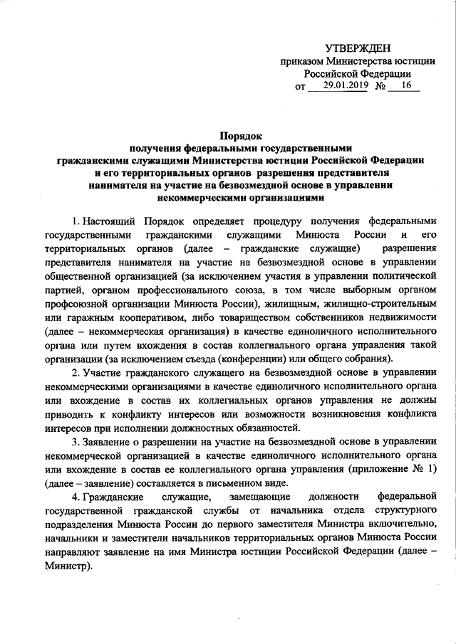 ПРИКАЗ Минюста РФ от 29.01.2019 N 16