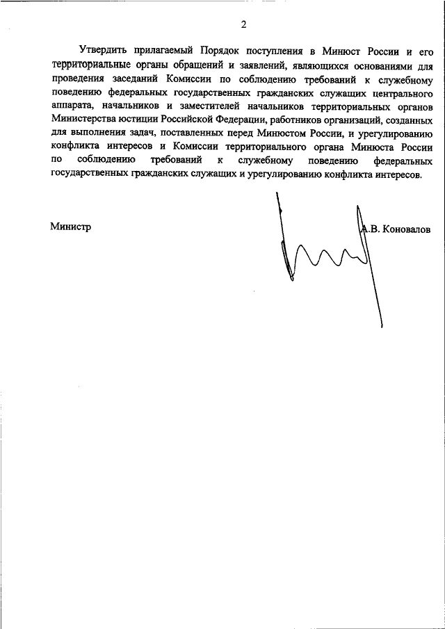 "ОБ УТВЕРЖДЕНИИ ПОРЯДКА ПОСТУПЛЕНИЯ В МИНЮСТ РОССИИ И ЕГО ТЕРРИТОРИАЛЬНЫЕ ОРГАНЫ ОБРАЩЕНИЙ И ЗАЯВЛЕНИЙ, ЯВЛЯЮЩИХСЯ ОСНОВАНИЯМИ ДЛЯ ПРОВЕДЕНИЯ ЗАСЕДАНИЙ КОМИССИИ ПО СОБЛЮДЕНИЮ ТРЕБОВАНИЙ К СЛУЖЕБНОМУ ПОВЕДЕНИЮ ФЕДЕРАЛЬНЫХ ГОСУДАРСТВЕННЫХ ГРАЖДАНСКИХ СЛУЖАЩИХ ЦЕНТРАЛЬНОГО АППАРАТА, НАЧАЛЬНИКОВ И ЗАМЕСТИТЕЛЕЙ НАЧАЛЬНИКОВ ТЕРРИТОРИАЛЬНЫХ ОРГАНОВ МИНИСТЕРСТВА ЮСТИЦИИ РОССИЙСКОЙ ФЕДЕРАЦИИ, РАБОТНИКОВ ОРГАНИЗАЦИЙ, СОЗДАННЫХ ДЛЯ ВЫПОЛНЕНИЯ ЗАДАЧ, ПОСТАВЛЕННЫХ ПЕРЕД МИНЮСТОМ РОССИИ, И УРЕГУЛИРОВАНИЮ КОНФЛИКТА ИНТЕРЕСОВ И КОМИССИИ ТЕРРИТОРИАЛЬНОГО ОРГАНА МИНЮСТА РОССИИ ПО СОБЛЮДЕНИЮ ТРЕБОВАНИЙ К СЛУЖЕБНОМУ ПОВЕДЕНИЮ ФЕДЕРАЛЬНЫХ ГОСУДАРСТВЕННЫХ ГРАЖДАНСКИХ СЛУЖАЩИХ И УРЕГУЛИРОВАНИЮ КОНФЛИКТА ИНТЕРЕСОВ"