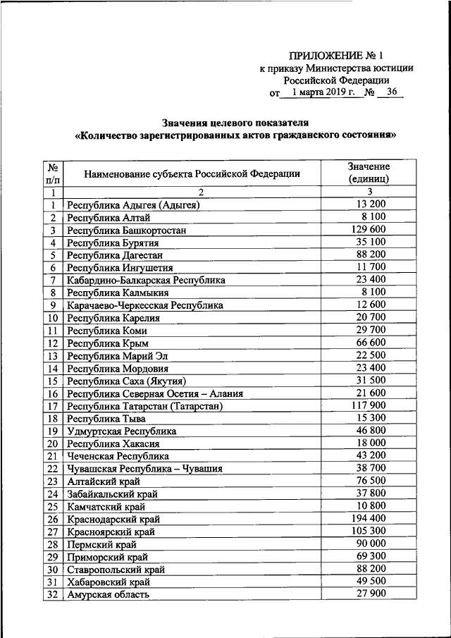 ПРИКАЗ Минюста РФ от 01.03.2019 N 36