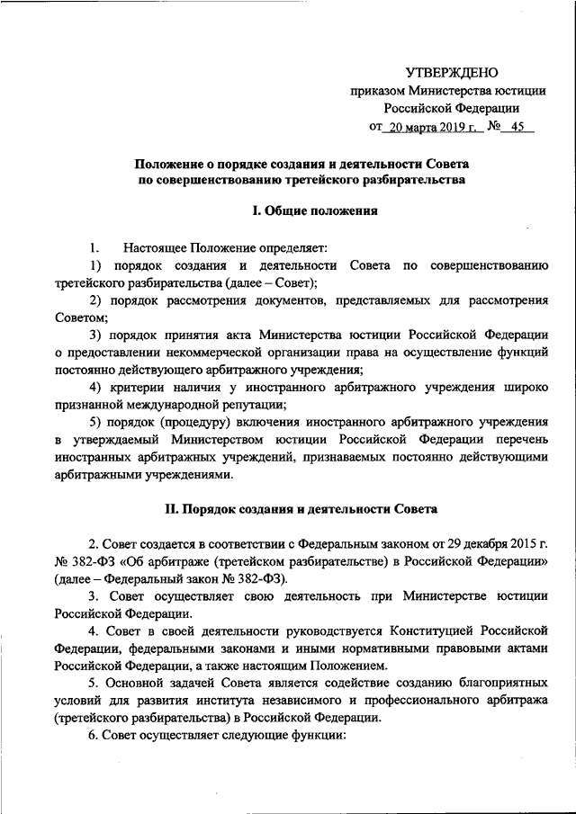 ПРИКАЗ Минюста РФ от 20.03.2019 N 45