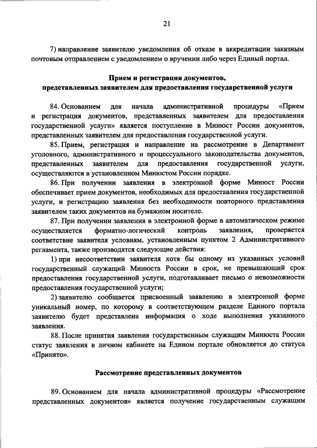 "ОБ УТВЕРЖДЕНИИ АДМИНИСТРАТИВНОГО РЕГЛАМЕНТА МИНИСТЕРСТВА ЮСТИЦИИ РОССИЙСКОЙ ФЕДЕРАЦИИ ПО ПРЕДОСТАВЛЕНИЮ ГОСУДАРСТВЕННОЙ УСЛУГИ ПО ОСУЩЕСТВЛЕНИЮ АККРЕДИТАЦИИ ЮРИДИЧЕСКИХ И ФИЗИЧЕСКИХ ЛИЦ, ИЗЪЯВИВШИХ ЖЕЛАНИЕ ПОЛУЧИТЬ АККРЕДИТАЦИЮ НА ПРОВЕДЕНИЕ В КАЧЕСТВЕ НЕЗАВИСИМЫХ ЭКСПЕРТОВ АНТИКОРРУПЦИОННОЙ ЭКСПЕРТИЗЫ НОРМАТИВНЫХ ПРАВОВЫХ АКТОВ И ПРОЕКТОВ НОРМАТИВНЫХ ПРАВОВЫХ АКТОВ В СЛУЧАЯХ, ПРЕДУСМОТРЕННЫХ ЗАКОНОДАТЕЛЬСТВОМ РОССИЙСКОЙ ФЕДЕРАЦИИ"
