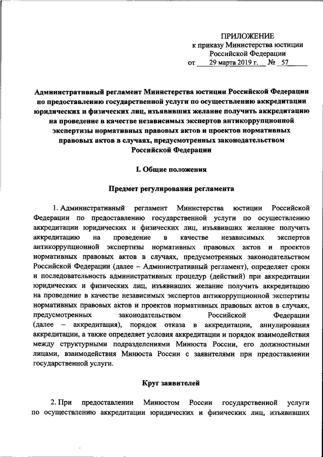 ПРИКАЗ Минюста РФ от 29.03.2019 N 57