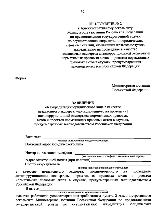 "ОБ УТВЕРЖДЕНИИ АДМИНИСТРАТИВНОГО РЕГЛАМЕНТА МИНИСТЕРСТВА ЮСТИЦИИ РОССИЙСКОЙ ФЕДЕРАЦИИ ПО ПРЕДОСТАВЛЕНИЮ ГОСУДАРСТВЕННОЙ УСЛУГИ ПО ОСУЩЕСТВЛЕНИЮ АККРЕДИТАЦИИ ЮРИДИЧЕСКИХ И ФИЗИЧЕСКИХ ЛИЦ, ИЗЪЯВИВШИХ ЖЕЛАНИЕ ПОЛУЧИТЬ АККРЕДИТАЦИЮ НА ПРОВЕДЕНИЕ В КАЧЕСТВЕ НЕЗАВИСИМЫХ ЭКСПЕРТОВ АНТИКОРРУПЦИОННОЙ ЭКСПЕРТИЗЫ НОРМАТИВНЫХ ПРАВОВЫХ АКТОВ И ПРОЕКТОВ НОРМАТИВНЫХ ПРАВОВЫХ АКТОВ В СЛУЧАЯХ, ПРЕДУСМОТРЕННЫХ ЗАКОНОДАТЕЛЬСТВОМ РОССИЙСКОЙ ФЕДЕРАЦИИ"