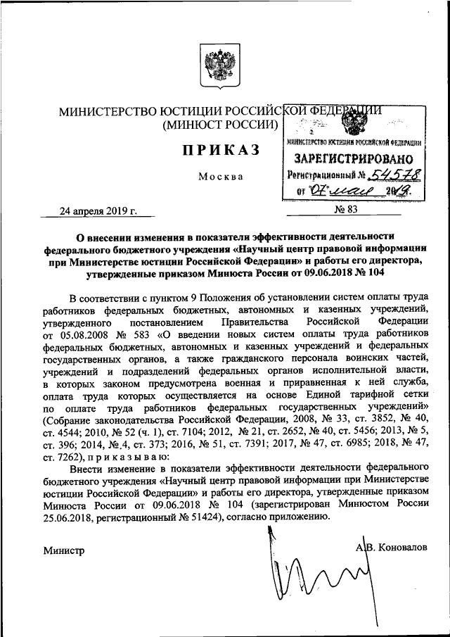 ПРИКАЗ Минюста РФ от 24.04.2019 N 83