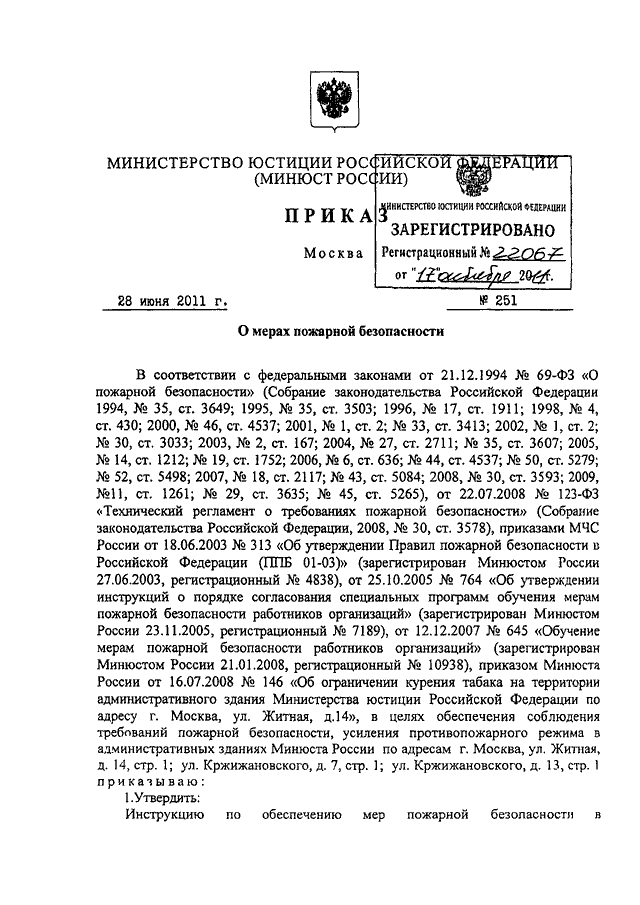 ПРИКАЗ Минюста РФ от 28.06.2011 N 251