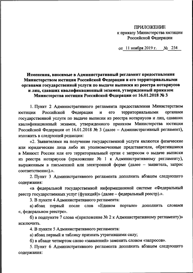 ПРИКАЗ Минюста РФ от 11.11.2019 N 254