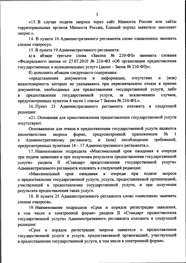 "О ВНЕСЕНИИ ИЗМЕНЕНИЙ В АДМИНИСТРАТИВНЫЙ РЕГЛАМЕНТ ПРЕДОСТАВЛЕНИЯ МИНИСТЕРСТВОМ ЮСТИЦИИ РОССИЙСКОЙ ФЕДЕРАЦИИ И ЕГО ТЕРРИТОРИАЛЬНЫМИ ОРГАНАМИ ГОСУДАРСТВЕННОЙ УСЛУГИ ПО ВЫДАЧЕ ВЫПИСКИ ИЗ РЕЕСТРА НОТАРИУСОВ И ЛИЦ, СДАВШИХ КВАЛИФИКАЦИОННЫЙ ЭКЗАМЕН, УТВЕРЖДЕННЫЙ ПРИКАЗОМ МИНИСТЕРСТВА ЮСТИЦИИ РОССИЙСКОЙ ФЕДЕРАЦИИ ОТ 16.01.2018 N 3"