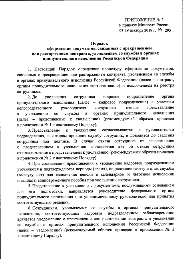 ПРИКАЗ Минюста РФ от 19.12.2019 N 295