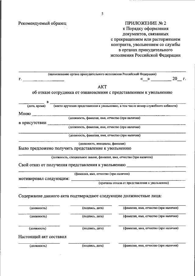 "ОБ УТВЕРЖДЕНИИ ПОРЯДКА ПРЕДСТАВЛЕНИЯ СОТРУДНИКОВ К УВОЛЬНЕНИЮ СО СЛУЖБЫ В ОРГАНАХ ПРИНУДИТЕЛЬНОГО ИСПОЛНЕНИЯ РОССИЙСКОЙ ФЕДЕРАЦИИ И ПОРЯДКА ОФОРМЛЕНИЯ ДОКУМЕНТОВ, СВЯЗАННЫХ С ПРЕКРАЩЕНИЕМ ИЛИ РАСТОРЖЕНИЕМ КОНТРАКТА, УВОЛЬНЕНИЕМ СО СЛУЖБЫ В ОРГАНАХ ПРИНУДИТЕЛЬНОГО ИСПОЛНЕНИЯ РОССИЙСКОЙ ФЕДЕРАЦИИ"