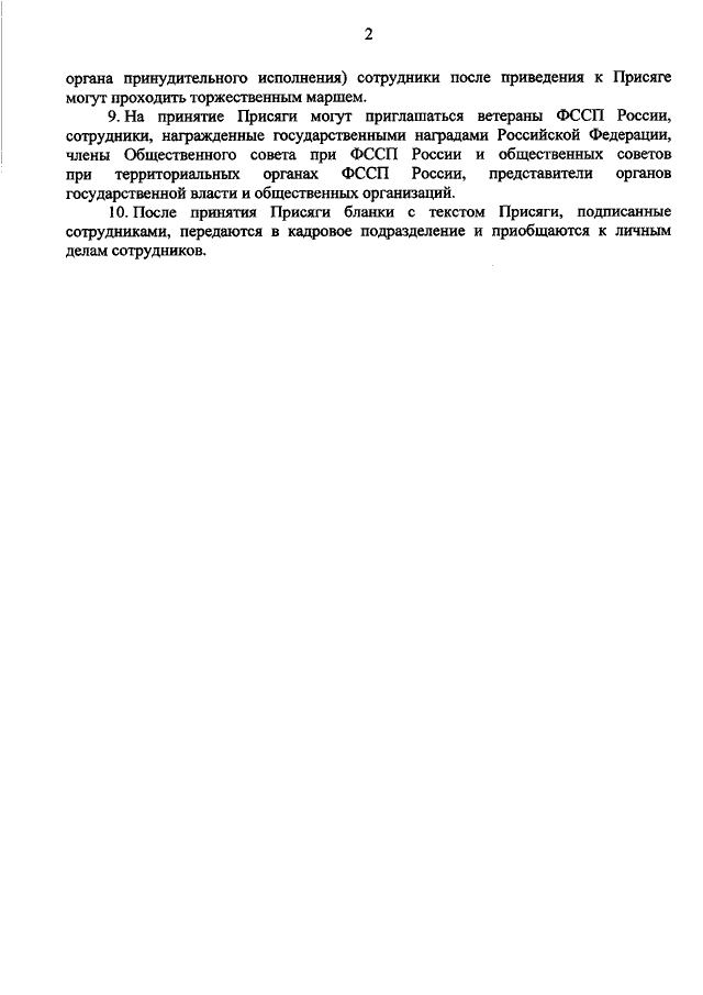 "ОБ УТВЕРЖДЕНИИ ПОРЯДКА ПРИВЕДЕНИЯ К ПРИСЯГЕ СОТРУДНИКА ОРГАНОВ ПРИНУДИТЕЛЬНОГО ИСПОЛНЕНИЯ РОССИЙСКОЙ ФЕДЕРАЦИИ"