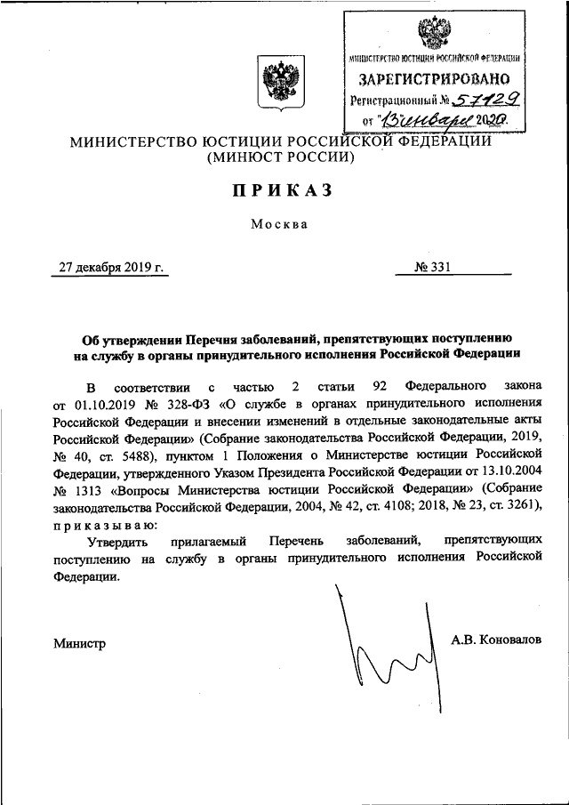 ПРИКАЗ Минюста РФ от 27.12.2019 N 331