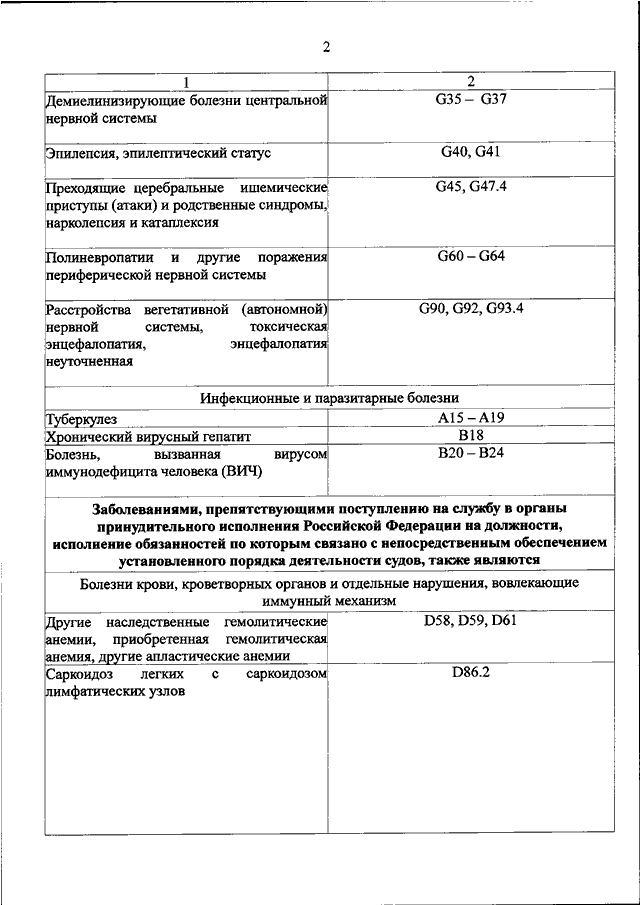 "ОБ УТВЕРЖДЕНИИ ПЕРЕЧНЯ ЗАБОЛЕВАНИЙ, ПРЕПЯТСТВУЮЩИХ ПОСТУПЛЕНИЮ НА СЛУЖБУ В ОРГАНЫ ПРИНУДИТЕЛЬНОГО ИСПОЛНЕНИЯ РОССИЙСКОЙ ФЕДЕРАЦИИ"