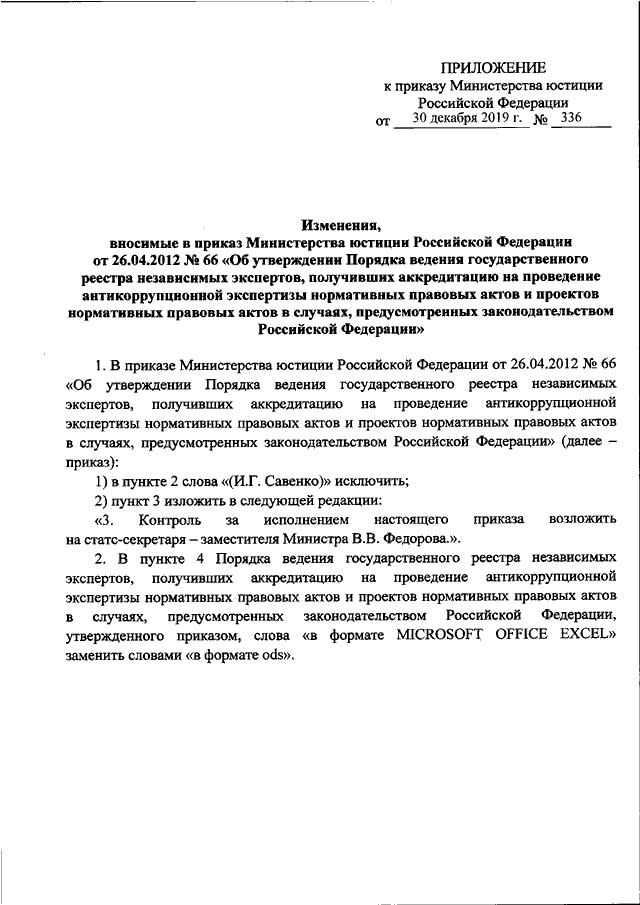 ПРИКАЗ Минюста РФ от 30.12.2019 N 336