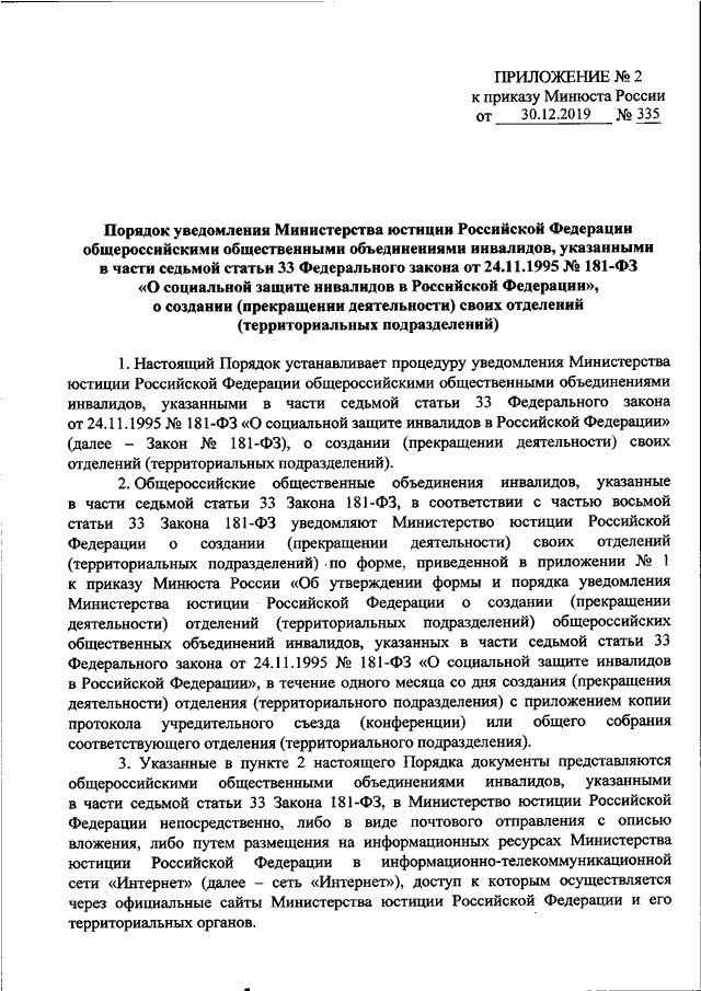 ПРИКАЗ Минюста РФ от 30.12.2019 N 335