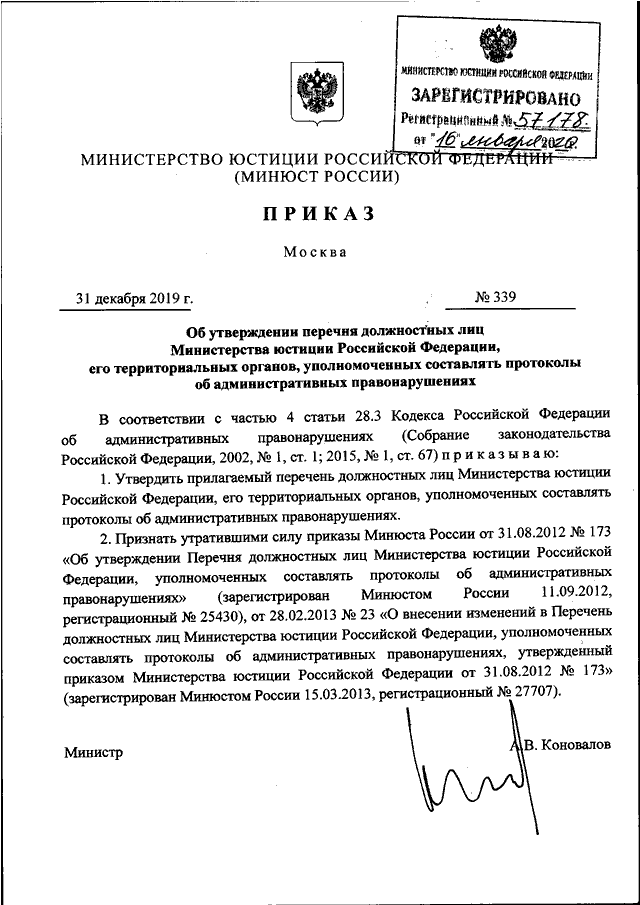 ПРИКАЗ Минюста РФ от 31.12.2019 N 339