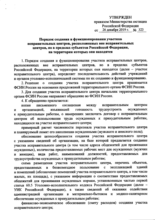 ПРИКАЗ Минюста РФ от 26.12.2019 N 323