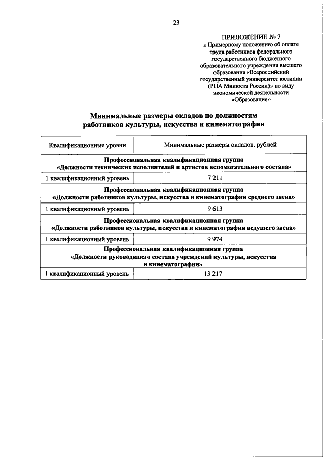 "ОБ УТВЕРЖДЕНИИ ПРИМЕРНОГО ПОЛОЖЕНИЯ ОБ ОПЛАТЕ ТРУДА РАБОТНИКОВ ФЕДЕРАЛЬНОГО ГОСУДАРСТВЕННОГО БЮДЖЕТНОГО ОБРАЗОВАТЕЛЬНОГО УЧРЕЖДЕНИЯ ВЫСШЕГО ОБРАЗОВАНИЯ "ВСЕРОССИЙСКИЙ ГОСУДАРСТВЕННЫЙ УНИВЕРСИТЕТ ЮСТИЦИИ (РПА МИНЮСТА РОССИИ)" ПО ВИДУ ЭКОНОМИЧЕСКОЙ ДЕЯТЕЛЬНОСТИ "ОБРАЗОВАНИЕ"