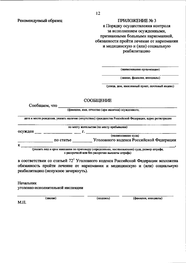 "ОБ УТВЕРЖДЕНИИ ПОРЯДКА ОСУЩЕСТВЛЕНИЯ КОНТРОЛЯ ЗА ИСПОЛНЕНИЕМ ОСУЖДЕННЫМИ, ПРИЗНАННЫМИ БОЛЬНЫМИ НАРКОМАНИЕЙ, ОБЯЗАННОСТИ ПРОЙТИ ЛЕЧЕНИЕ ОТ НАРКОМАНИИ И МЕДИЦИНСКУЮ И (ИЛИ) СОЦИАЛЬНУЮ РЕАБИЛИТАЦИЮ"