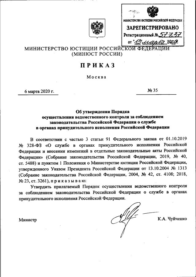 ПРИКАЗ Минюста РФ от 06.03.2020 N 35