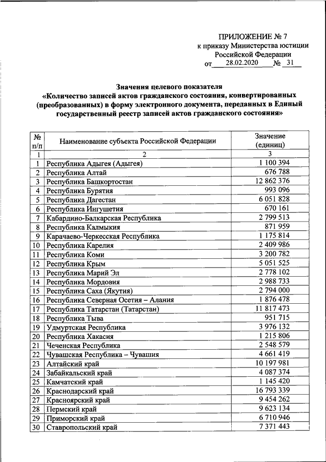 ПРИКАЗ Минюста РФ от 28.02.2020 N 31