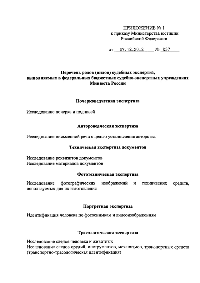 ПРИКАЗ Минюста РФ от 27.12.2012 N 237