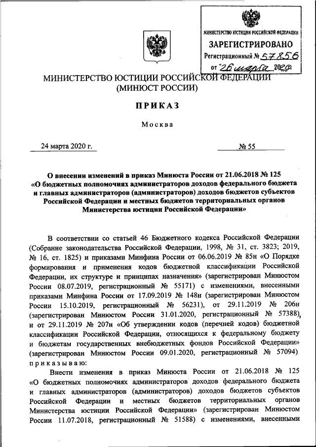 ПРИКАЗ Минюста РФ от 24.03.2020 N 55