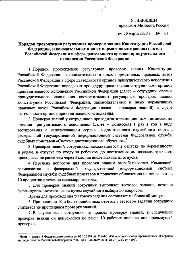 ПРИКАЗ Минюста РФ от 30.03.2020 N 61
