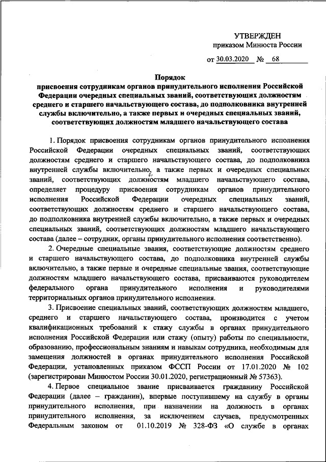 ПРИКАЗ Минюста РФ от 30.03.2020 N 68