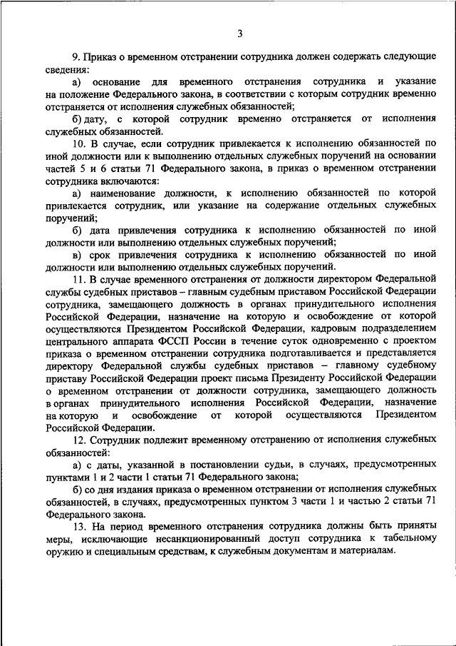 "ОБ УТВЕРЖДЕНИИ ПОРЯДКА ВРЕМЕННОГО ОТСТРАНЕНИЯ СОТРУДНИКА ОРГАНОВ ПРИНУДИТЕЛЬНОГО ИСПОЛНЕНИЯ РОССИЙСКОЙ ФЕДЕРАЦИИ ОТ ИСПОЛНЕНИЯ СЛУЖЕБНЫХ ОБЯЗАННОСТЕЙ"