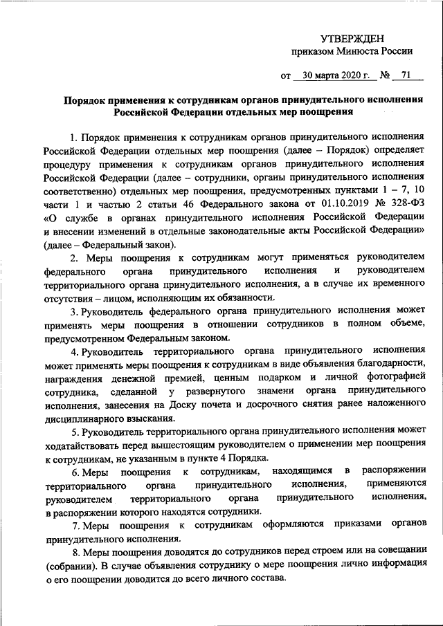 ПРИКАЗ Минюста РФ от 30.03.2020 N 71