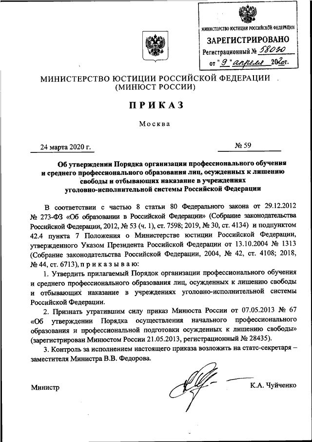 ПРИКАЗ Минюста РФ от 24.03.2020 N 59