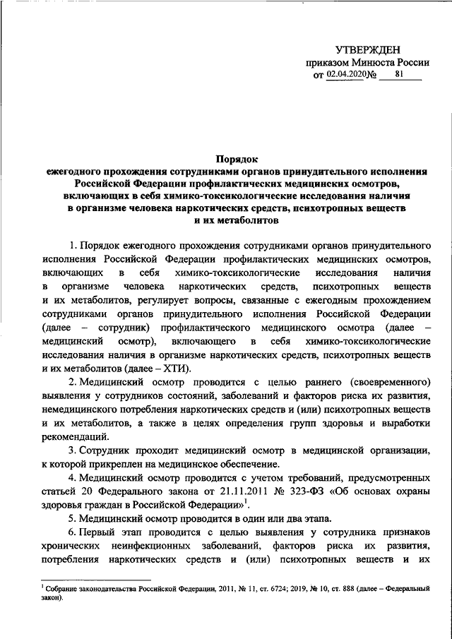 ПРИКАЗ Минюста РФ от 02.04.2020 N 81