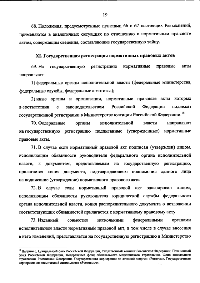 "ОБ УТВЕРЖДЕНИИ РАЗЪЯСНЕНИЙ О ПРИМЕНЕНИИ ПРАВИЛ ПОДГОТОВКИ НОРМАТИВНЫХ ПРАВОВЫХ АКТОВ ФЕДЕРАЛЬНЫХ ОРГАНОВ ИСПОЛНИТЕЛЬНОЙ ВЛАСТИ И ИХ ГОСУДАРСТВЕННОЙ РЕГИСТРАЦИИ"