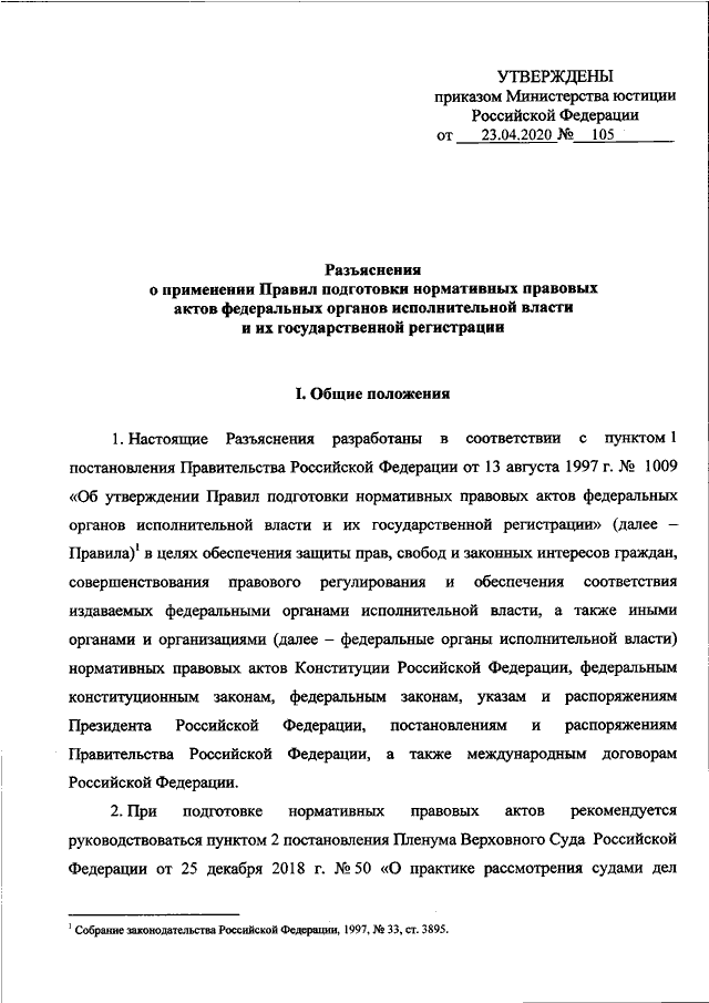 "ОБ УТВЕРЖДЕНИИ РАЗЪЯСНЕНИЙ О ПРИМЕНЕНИИ ПРАВИЛ ПОДГОТОВКИ НОРМАТИВНЫХ ПРАВОВЫХ АКТОВ ФЕДЕРАЛЬНЫХ ОРГАНОВ ИСПОЛНИТЕЛЬНОЙ ВЛАСТИ И ИХ ГОСУДАРСТВЕННОЙ РЕГИСТРАЦИИ"