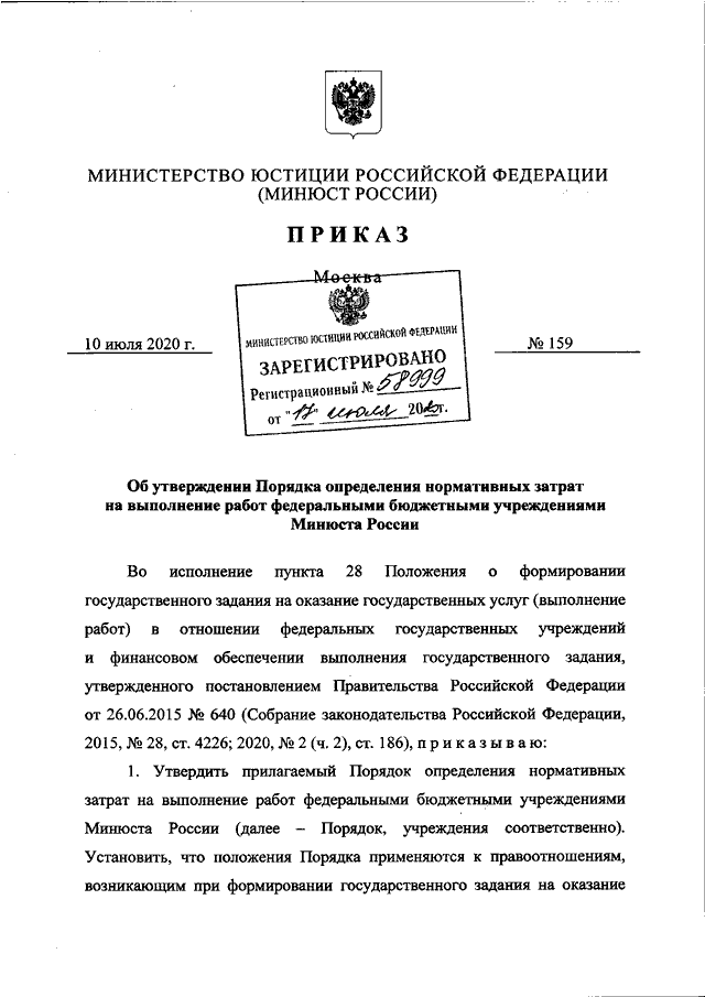 ПРИКАЗ Минюста РФ от 10.07.2020 N 159