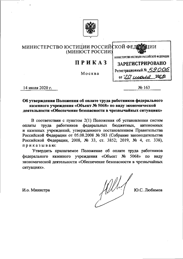 ПРИКАЗ Минюста РФ от 14.07.2020 N 163