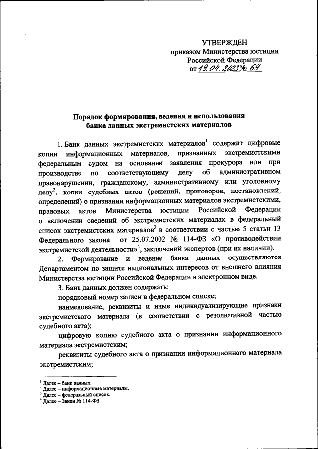 ПРИКАЗ Минюста РФ от 19.04.2023 N 69
