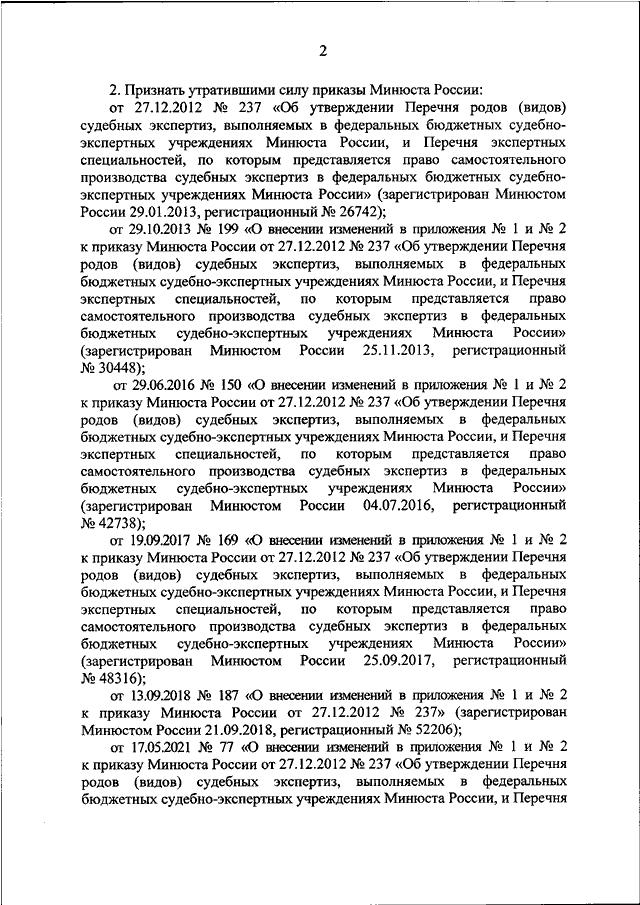 "ОБ УТВЕРЖДЕНИИ ПЕРЕЧНЯ РОДОВ (ВИДОВ) СУДЕБНЫХ ЭКСПЕРТИЗ, ВЫПОЛНЯЕМЫХ В ФЕДЕРАЛЬНЫХ БЮДЖЕТНЫХ СУДЕБНО - ЭКСПЕРТНЫХ УЧРЕЖДЕНИЯХ МИНЮСТА РОССИИ, И ПЕРЕЧНЯ ЭКСПЕРТНЫХ СПЕЦИАЛЬНОСТЕЙ, ПО КОТОРЫМ ПРЕДОСТАВЛЯЕТСЯ ПРАВО САМОСТОЯТЕЛЬНОГО ПРОИЗВОДСТВА СУДЕБНЫХ ЭКСПЕРТИЗ В ФЕДЕРАЛЬНЫХ БЮДЖЕТНЫХ СУДЕБНО - ЭКСПЕРТНЫХ УЧРЕЖДЕНИЯХ МИНЮСТА РОССИИ"