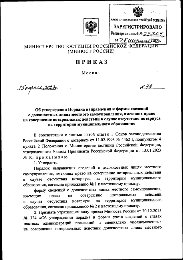 ПРИКАЗ Минюста РФ от 25.04.2023 N 79