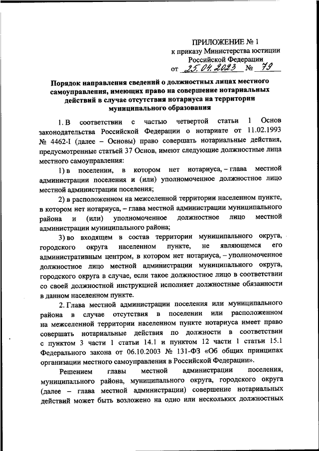 ПРИКАЗ Минюста РФ от 25.04.2023 N 79
