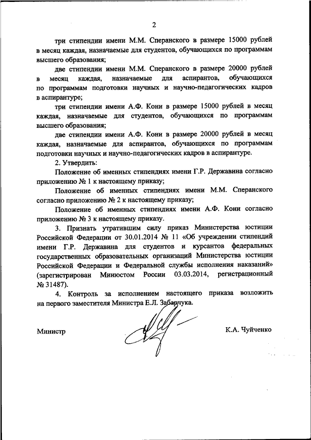 "ОБ УЧРЕЖДЕНИИ ИМЕННЫХ СТИПЕНДИЙ ДЛЯ СТУДЕНТОВ И АСПИРАНТОВ ФЕДЕРАЛЬНЫХ ГОСУДАРСТВЕННЫХ ОБРАЗОВАТЕЛЬНЫХ ОРГАНИЗАЦИЙ МИНИСТЕРСТВА ЮСТИЦИИ РОССИЙСКОЙ ФЕДЕРАЦИИ"