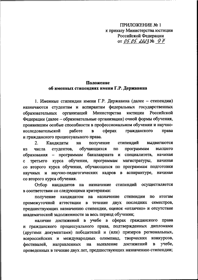 ПРИКАЗ Минюста РФ от 05.05.2023 N 97