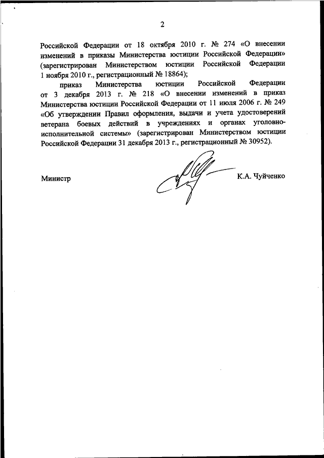 "О ПРИЗНАНИИ УТРАТИВШИМИ СИЛУ ПРИКАЗА МИНИСТЕРСТВА ЮСТИЦИИ РОССИЙСКОЙ ФЕДЕРАЦИИ ОТ 11.07.2006 N 249 "ОБ УТВЕРЖДЕНИИ ПРАВИЛ ОФОРМЛЕНИЯ, ВЫДАЧИ И УЧЕТА УДОСТОВЕРЕНИЙ ВЕТЕРАНА БОЕВЫХ ДЕЙСТВИЙ В УЧРЕЖДЕНИЯХ И ОРГАНАХ УГОЛОВНО - ИСПОЛНИТЕЛЬНОЙ СИСТЕМЫ" И ВНЕСЕННЫХ В НЕГО ИЗМЕНЕНИЙ"