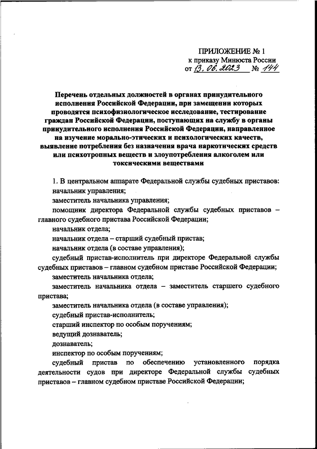 ПРИКАЗ Минюста РФ от 13.06.2023 N 144