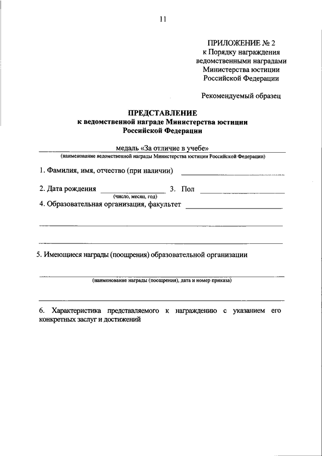 "О ВЕДОМСТВЕННЫХ НАГРАДАХ МИНИСТЕРСТВА ЮСТИЦИИ РОССИЙСКОЙ ФЕДЕРАЦИИ"