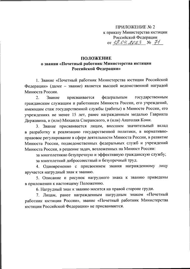 ПРИКАЗ Минюста РФ от 19.04.2023 N 71