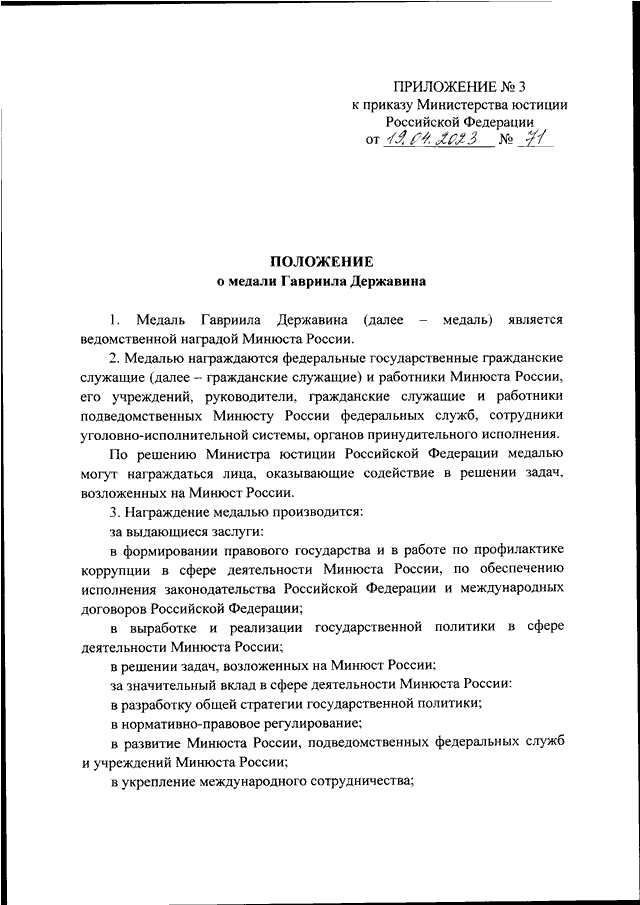ПРИКАЗ Минюста РФ от 19.04.2023 N 71