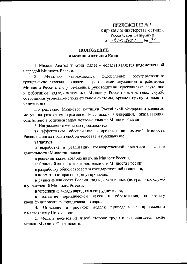 ПРИКАЗ Минюста РФ от 19.04.2023 N 71
