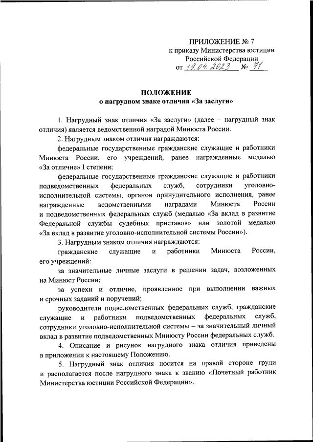 ПРИКАЗ Минюста РФ от 19.04.2023 N 71